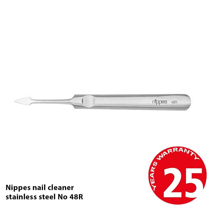 The nail cleaner has a curved tip that you can use to clean the underside of the nail and the nail folds. Stable and durable instrument, made entirely of stainless steel.
