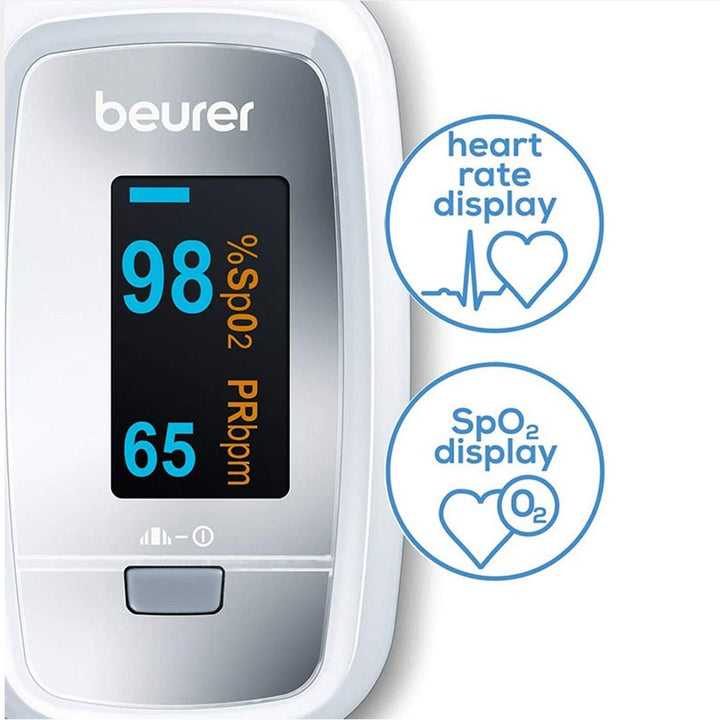 Beurer PO30 Pulse Oximeter | Determination of heart rate and arterial oxygen saturation for those with medical conditions | Suitable for high-altitude sports | Small and lightweight | Medical device