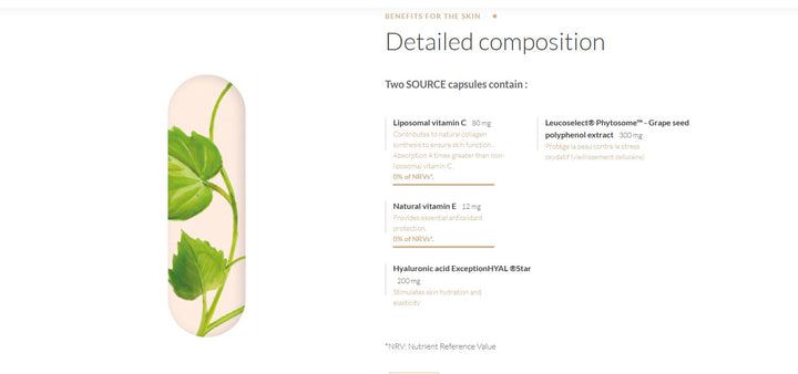 Thanks to its liposomal and phytosomal active ingredients, Source guarantees optimal absorption of essential nutrients: the active ingredients reach dermal cells directly to act where the skin needs them.