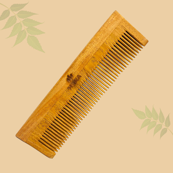 Designed with fine teeth for precise styling, this comb ensures detailed, accurate grooming that’s perfect for any hair type. The inherent antibacterial properties of neem wood support scalp health, helping to reduce dandruff and prevent infections, making it an ideal addition to your daily hair care routine.