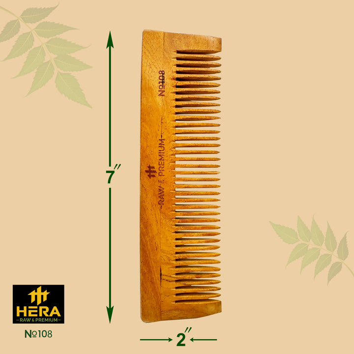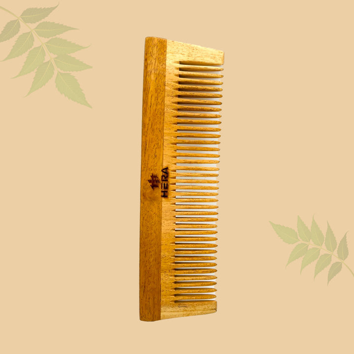 The Hera Wide Dual-Tooth Comb, crafted from eco-friendly Neem Wood, combines versatility and sustainability.